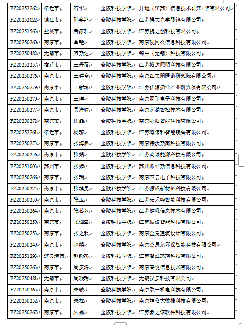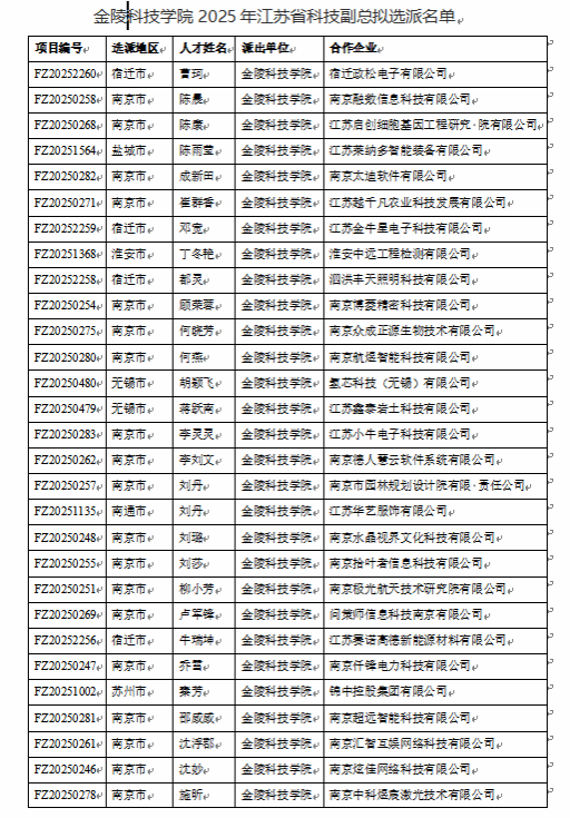 金陵科技学院2025年江苏省科技副总拟选派名单
