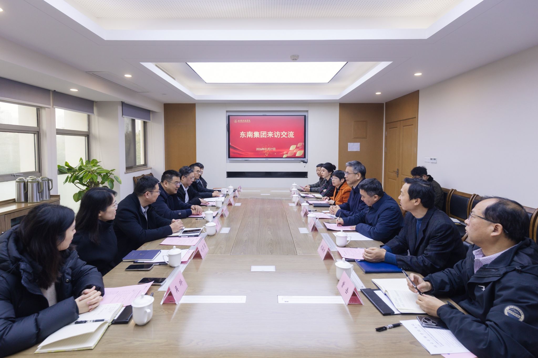 1月27日,东南集团党委书记、董事长井深一行来校考察交流并召开座谈会。校党委书记刘志远、校长季赛出席会议,会议由副校长张燕主持。