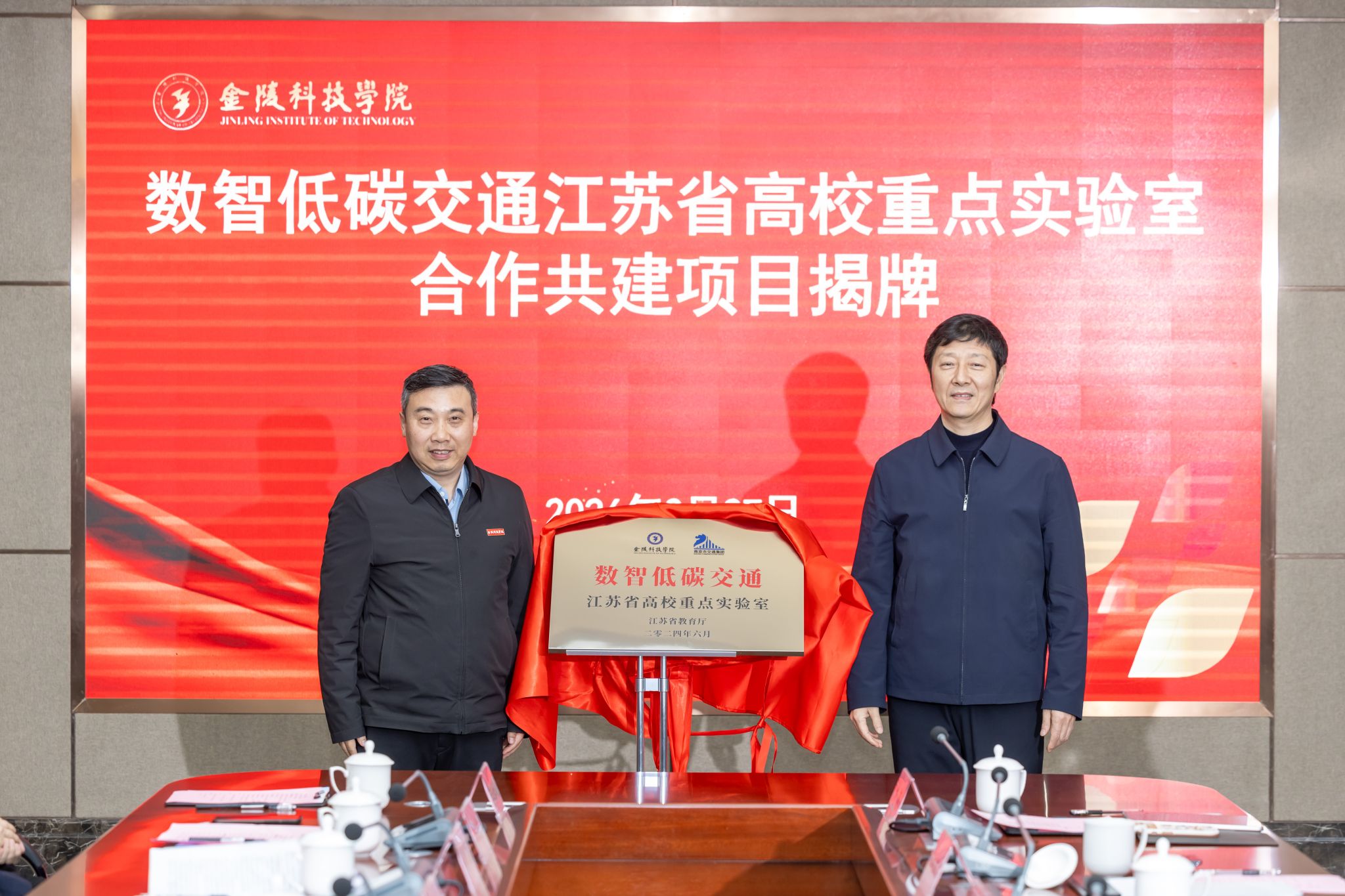 在奚晖、陈亚林、刘志远、季赛的见证下,南京市交通集团副总经理王学斌与张燕代表双方签订了《南京市交通集团—金陵科技学院战略合作框架协议》;南京公路发展集团总经理成金与网络与通信工程学院院长王池社代表双方签订了《产学研合作框架协议》。陈亚林和季赛共同为“数智低碳交通江苏省高校重点实验室”揭牌。